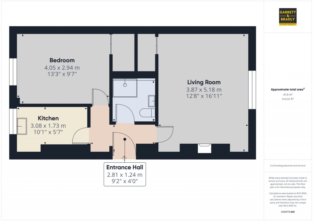 The property also features an entrance hall, spacious living room, separate kitchen, bedroom and bathroom.